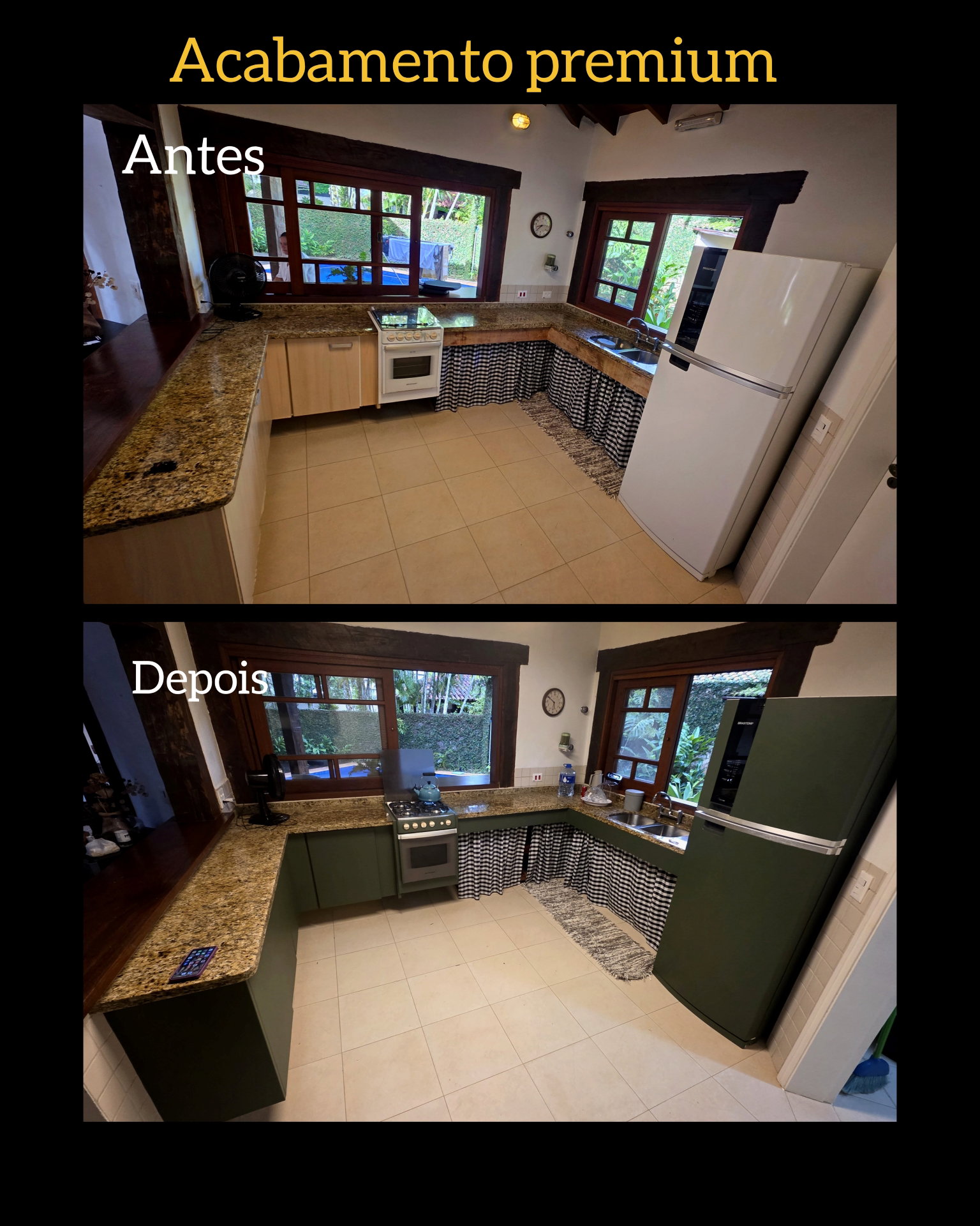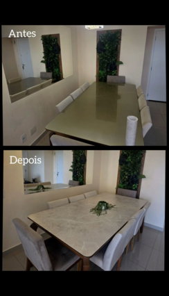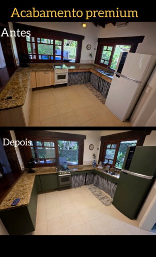 "Contratei o serviço para renovar minha cozinha sem gastar com reforma e foi a melhor decisão! Ficou lindo, sofisticado e ninguém acredita que não troquei os móveis. Trabalho impecável e entregue no prazo!"